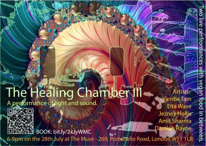 Two forty-minute performances of live music and light to offer an alternative to a night at the pub – no hangover. Based on the healing Solfeggio frequencies, we compose live percussion and digital elements to create a meditative state, with visuals mixed live.