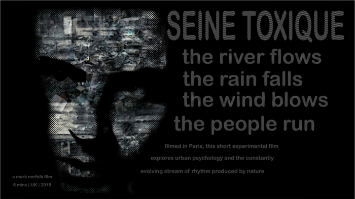 Humans are constantly on the move, physically and psychologically, yet how does this natural disposition impact with the environment they believe they have conquered? Seine Toxique uses multilayered looped images to create its own rhythm alongside a soundtrack accompaniment of vibrant violin and percussion to explore the rhythm of city-dwelling humans against nature itself.