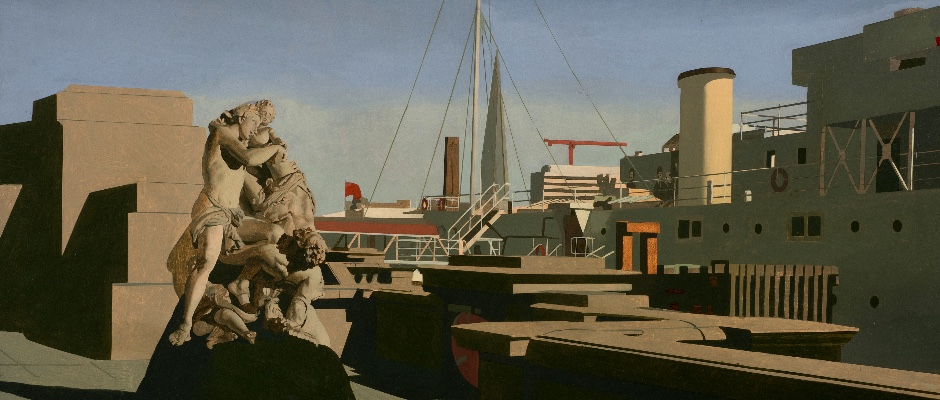 'Unseen', also, in the sense that they are a semi-fictional take on London. Imagery is often plundered from the past to inform the present. So anything from a small terracotta maquette to a monumental Canova sculpture might materialise in unexpected places like London's Embankment or the riverside adjacent to the City. There are rarely specific stories in these paintings however, so the spectator is left to wonder at their enigmatic quality, curious juxtapositions, and engaging blend of fact and fiction. Innovative spatially as well, their perspective varies from conventional to 'mirror image'. Often bathed in strong light and deep shadow, they always have an evocative quality and vary in mood from playful to unsettling. Visually they read like a contemporary take on Piero della Francesca - strong surface pattern, carefully judged intervals and restrained detail with a broader description of form.